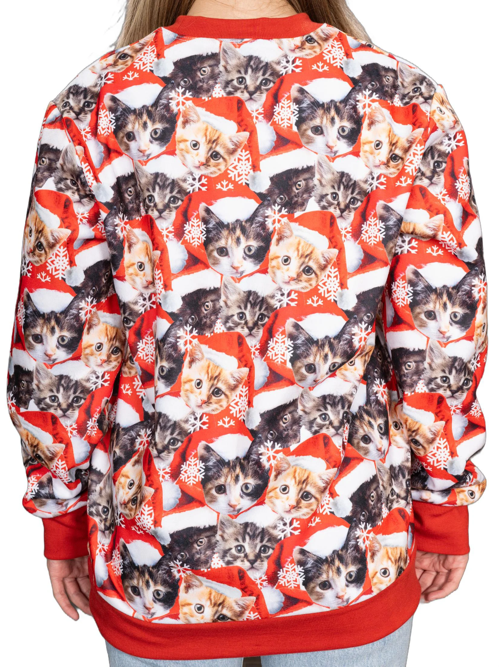 Unique Cat Design: Embrace the holiday spirit with this unisex funny ugly Christmas sweatshirt featuring an all-over cat graphic. Perfect for mens and womens who love to stand out at any festive gathering.